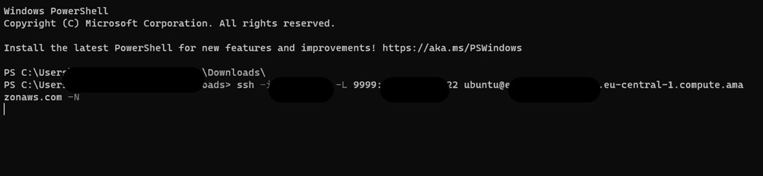 Open a terminal window and navigate to the directory containing your key.pem file. Then, establish the SSH tunnel with the following command: