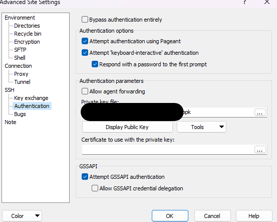 | Key File | Browse to and select your key.ppk or key.pem file. |
