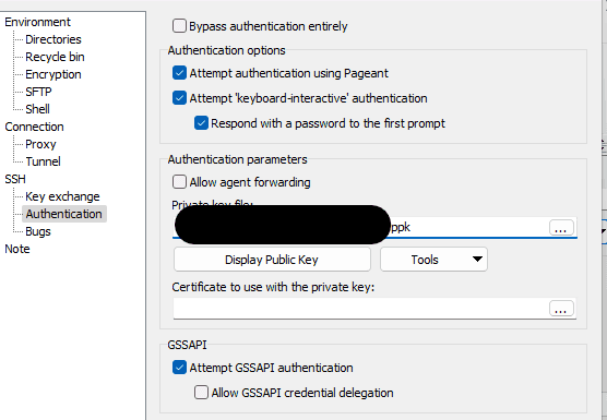 Setting Value Tunnel Host name Enter the public IPv4 DNS of your Bastion host. Port number 22User name ubuntuAuthentication Select the key.ppkfile for the SSH private key once more.