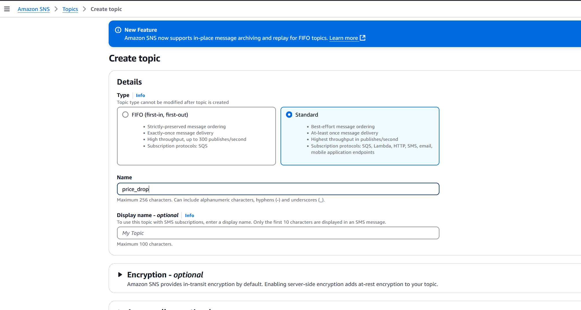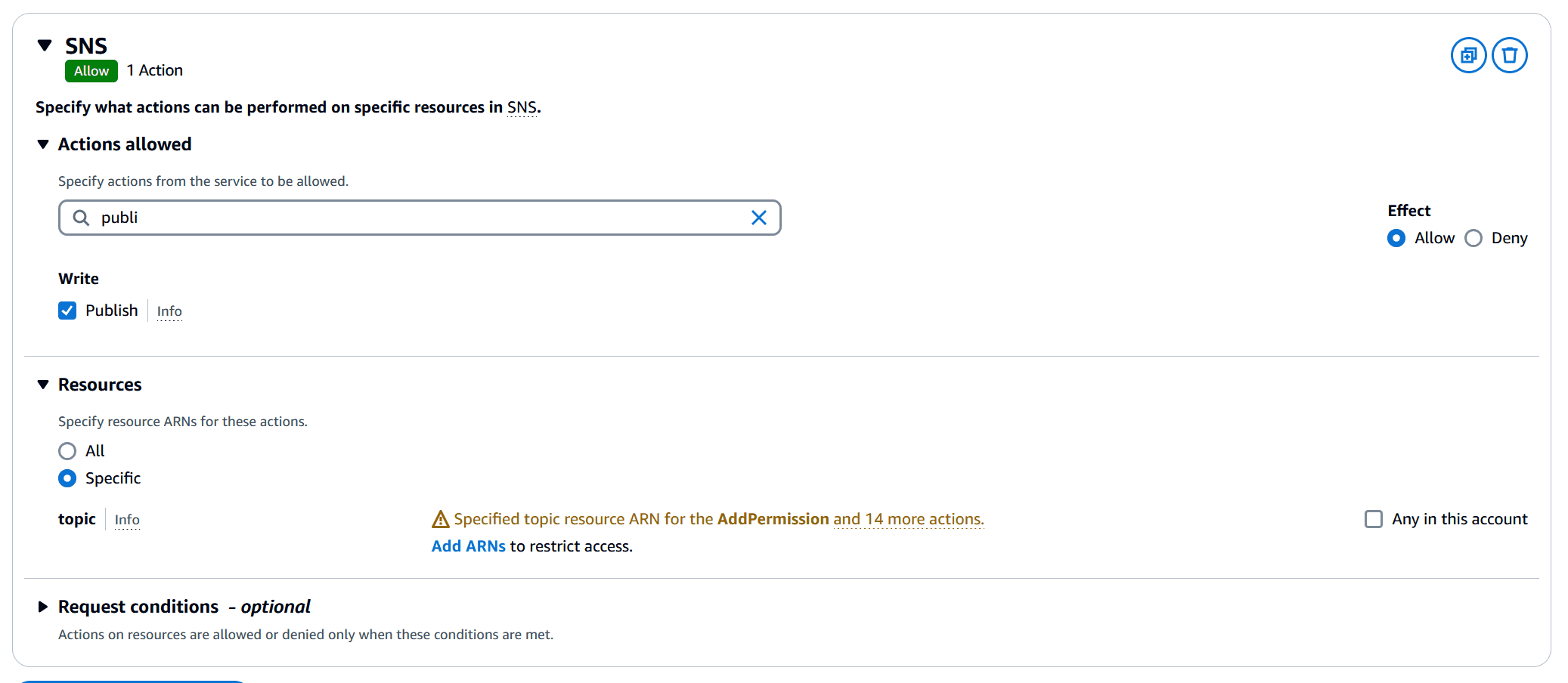- Sub-step: Copy the Topic ARN and replace SNS_TOPIC_ARN in the Lambda code with it.