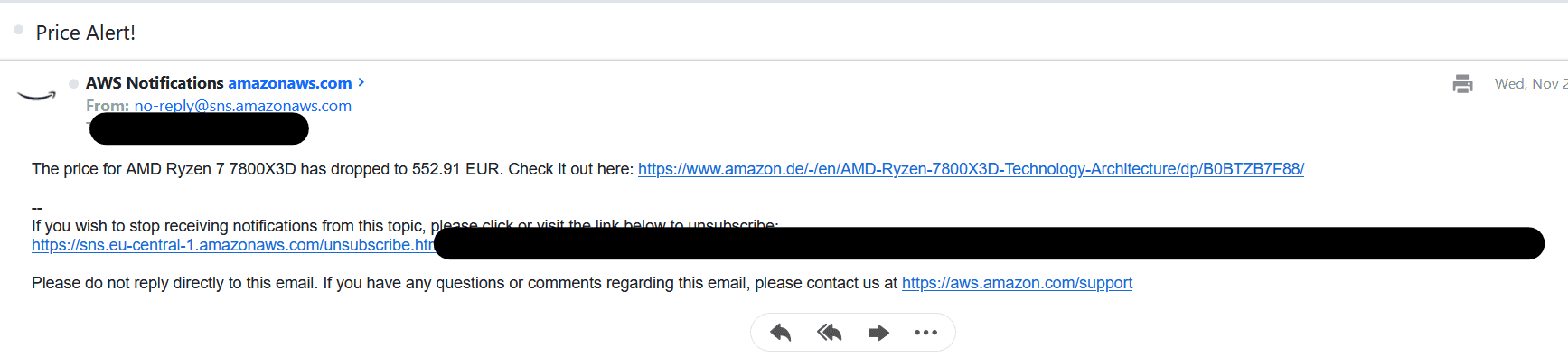 Using an AWS lambda to check the price of item and get informed when it drops under a certain threshold by e-mail