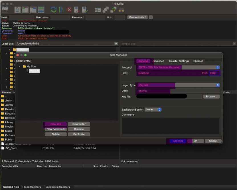 This setup provides a secure method to transfer files to and from your WordPress site hosted on AWS. Using Core Tunnel and FileZilla ensures your connections are secure and your data is managed efficiently. Always store your private keys and sensitive information securely and avoid sharing them.