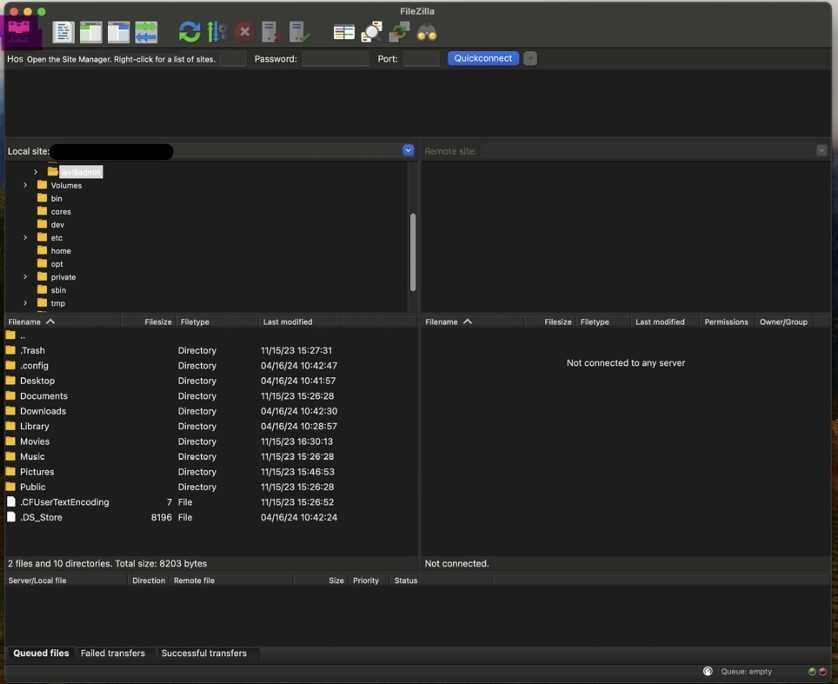 Use FileZilla to manage files through the secure tunnel established by Core Tunnel.